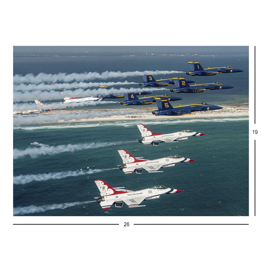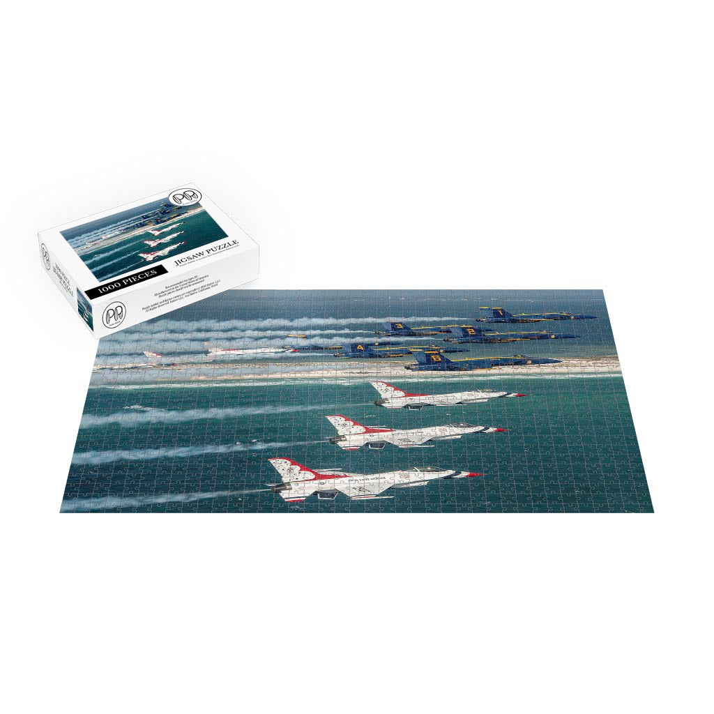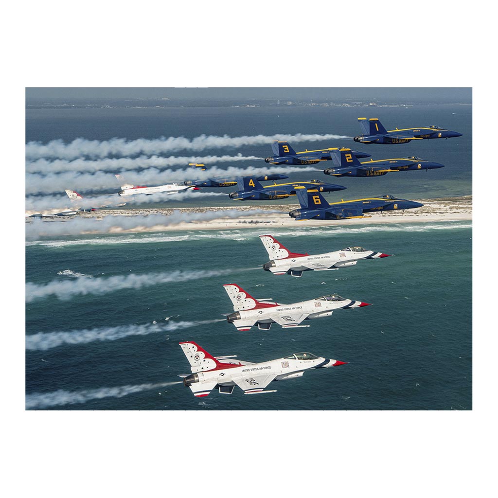 The U.S. Air Force Air Demonstration Squadron "Thunderbirds" perform a joint flyover with the U.S. Navy Flight Demonstration Squadron “Blue Angels” in Pensacola, Fla., Oct. 30, 2024. The Thunderbirds and Blue Angels kicked off the 2024 season training together in El Centro, Calif., and concluded the season with a rare joint air show at NAS Pensacola. (U.S. Air Force photo by Staff Sgt. Dakota Carter)